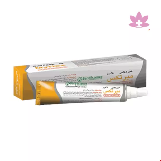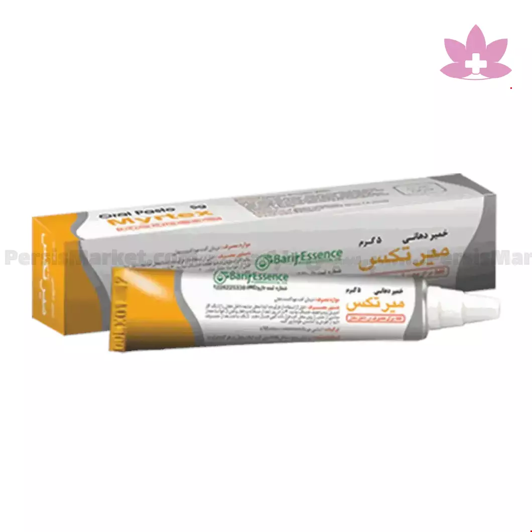 خمیر دهانی میرتکس باریج حاوی اسانس مورد بوده و باعث درمان آفت و تبخال و کاهش دفعات عود مجدد آنها می شود.