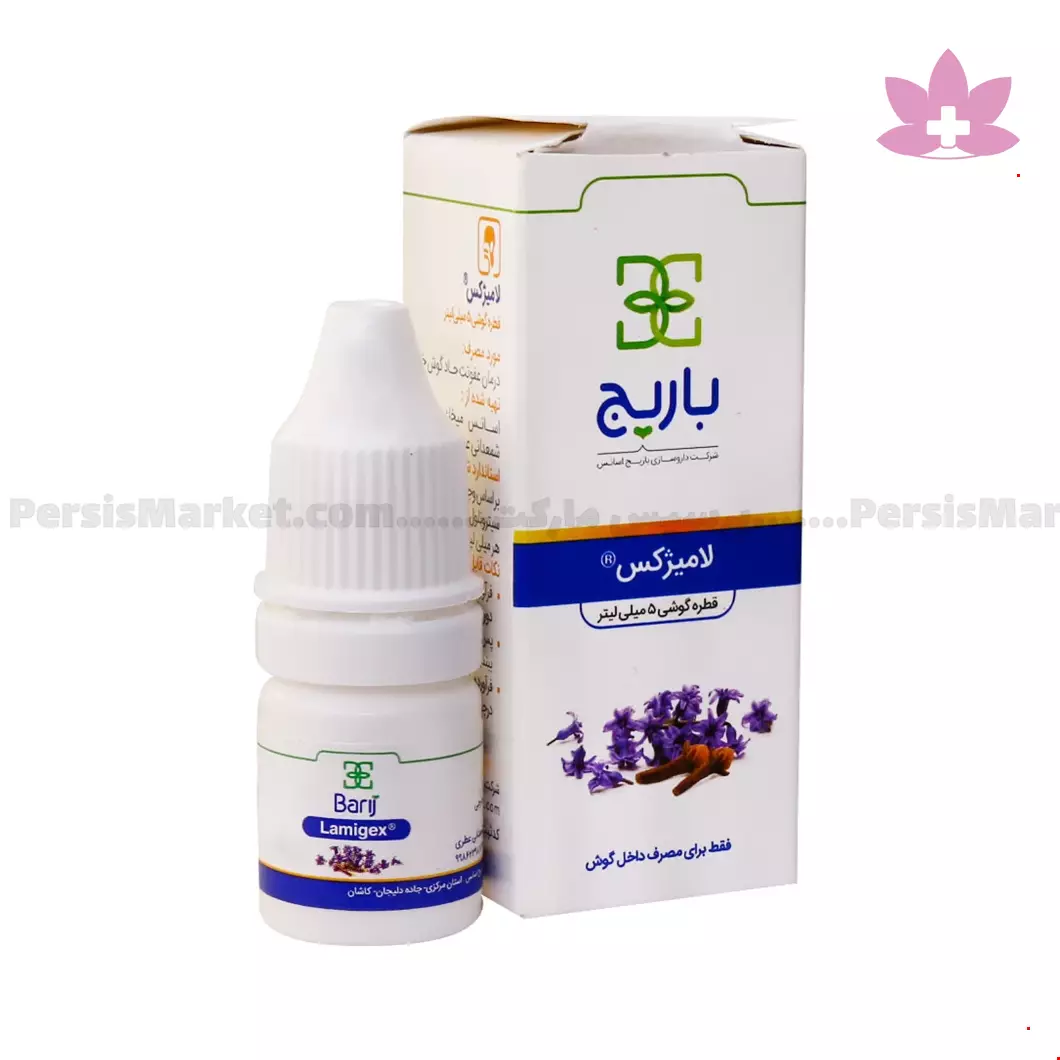 قطره لامیژکس باریج حاوی اسانس میخک اسطوخودوس و شمعدانی بوده که این ترکیب اثر آنتی باکتریال داشته و جهت رفع عفونت گوش خارجی مورد مصرف قرار می گیرد.