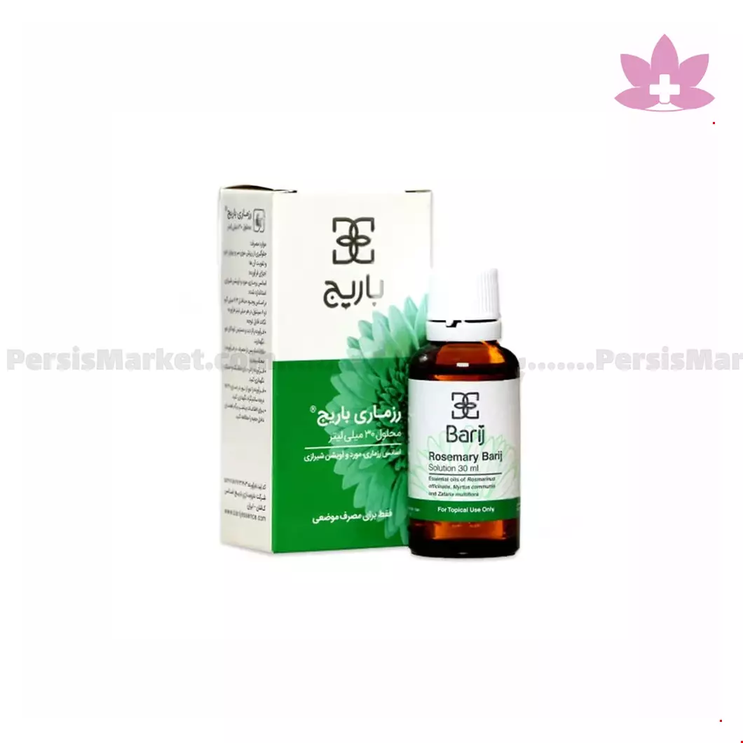 لوسیون موضعی رزماری باریج با بهبود گردش خون موضعی و بهبود تغذیه فولیکول ها موجب پیشگیری از ریزش مو و تقویت موها و تحریک رویش مجدد آنها می شود این ترکیب همچنین در درمان شوره سر نیز موثر می باشد.