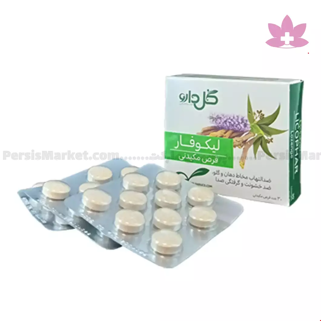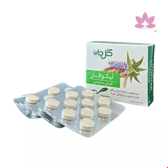 قرص مکیدنی لیکوفار فرآورده ای طبیعی است که حاوی عصاره گیاهان شیرین بیان ، اکالیپتوس و فلفل قرمز می باشد . استفاه از این دارو جهت بهبود التهاب مخاط دهان و گلو ، رفع سرفه و گرفتگی صدا ، تسهیل خروج خلط های تنفسی توصیه می گردد