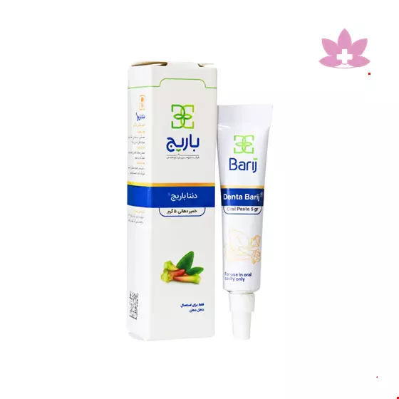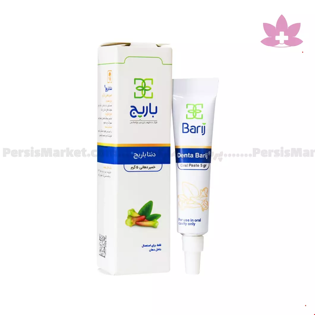 خمیر دهانی دنتا باریج حاوی اسانس مورد بوده که باعث درمان آفت و تبخال و کاهش دفعات عود مجدد آنها و همچنین باعث کاهش درد های دندان و لثه می شود.
