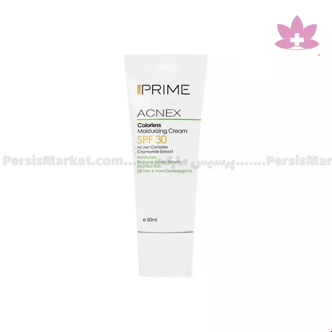 کرم مرطوب کننده بدون رنگ SPF30 پرایم ، یک مرطوب کننده کاملا مناسب برای پوست های چرب و آکنه دار با پخش پذیری مناسب است که حاوی فیلترهای ضدآفتاب و همچنین ترکیباتی برای کنترل آکنه های خفیف تا متوسط می باشد.